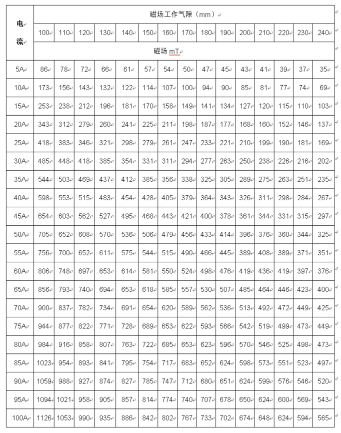 4.0、磁場(chǎng)參數表
